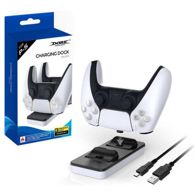 داک شارژ دوتایی برای دسته بازی های پلی استیشن 5 همراه با کابل رابط اصلی بصورت کامل، نسخه با کیفیت با ولتاژ خروجی 600 میلی امپر که به باتری دسته بازی هیچ اسیبی نمی رساند لذا نسخه کپی بدلیل نوسانات در جریان شارژ ممکن است باتری دسته و یا ای سی دسته را اسیب بزند